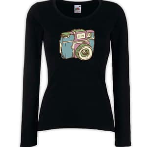 T-shirt manica lunga donna – J124 Oh Snap! Scatto Macchina Fotografica Foto retrò