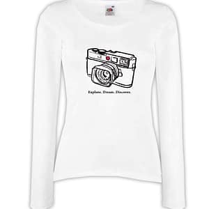 T-shirt manica lunga donna – J125 Explore Dream Discover Macchina Fotografica Foto