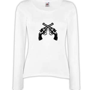 T-shirt manica lunga donna – J136 Pistole incrociate Guns Proiettili Armi da fuoco